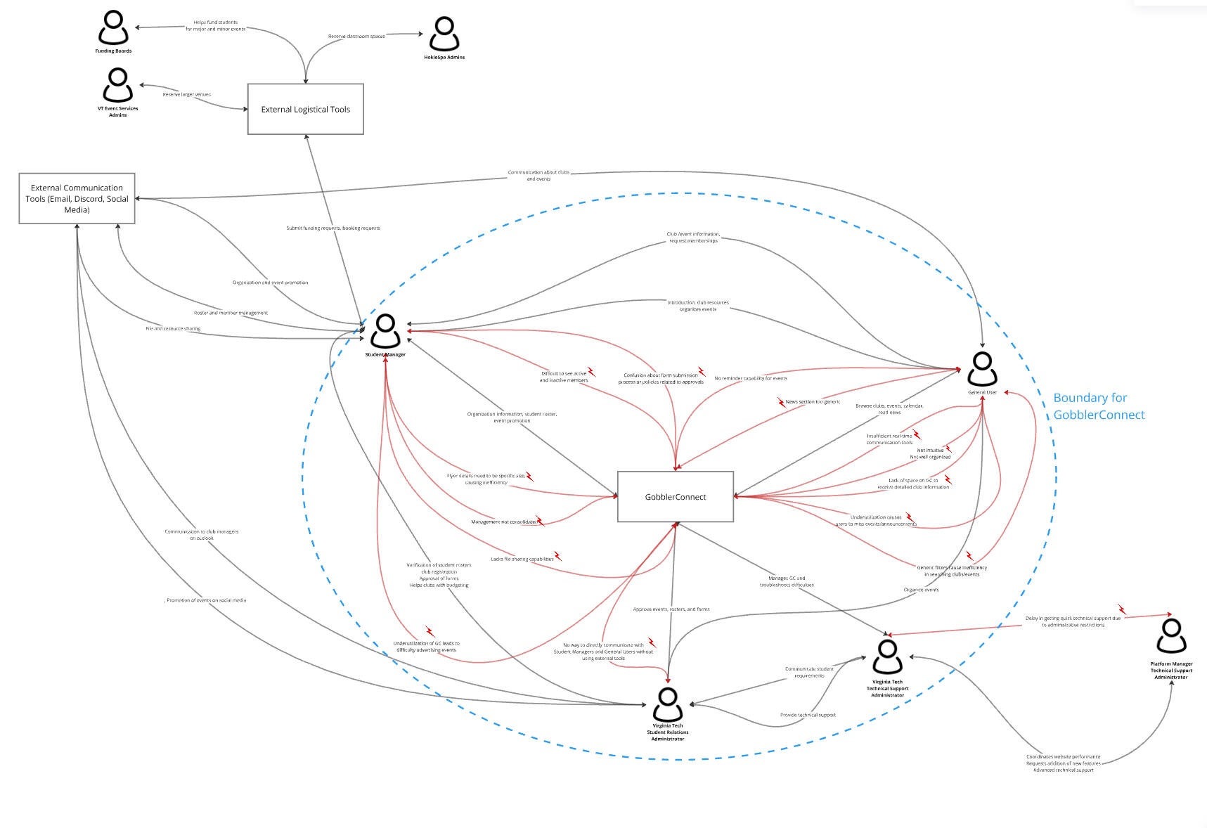 | Users finding events/clubs to stay updated on campus activities. | Leaders responsible for event organization, roster updates, and club communication. | Stakeholders managing event approvals and platform maintenance. |